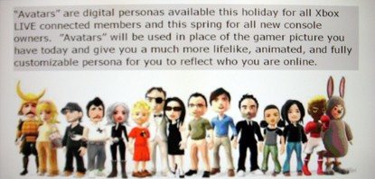 Curiosamente esta nueva e innovadora funcionalidad que al parecer brindará a sus usuarios, es muy semejante a la que nos ofrecen Nintendo con sus Miis y en el caso de Sony con su Playstation Home. Estos nuevos avatares animados serán el reemplazo de las imágenes estáticas de las que se disponen hoy en día, pudiendo ser personalizadas por los usuarios y estará disponible supuestamente estas vacaciones de verano para los usuarios ya presentes en la Xbox LIVE, y para los que recién se hagan acreedores de una Xbox 360 lo podrán disfrutar para la primavera.